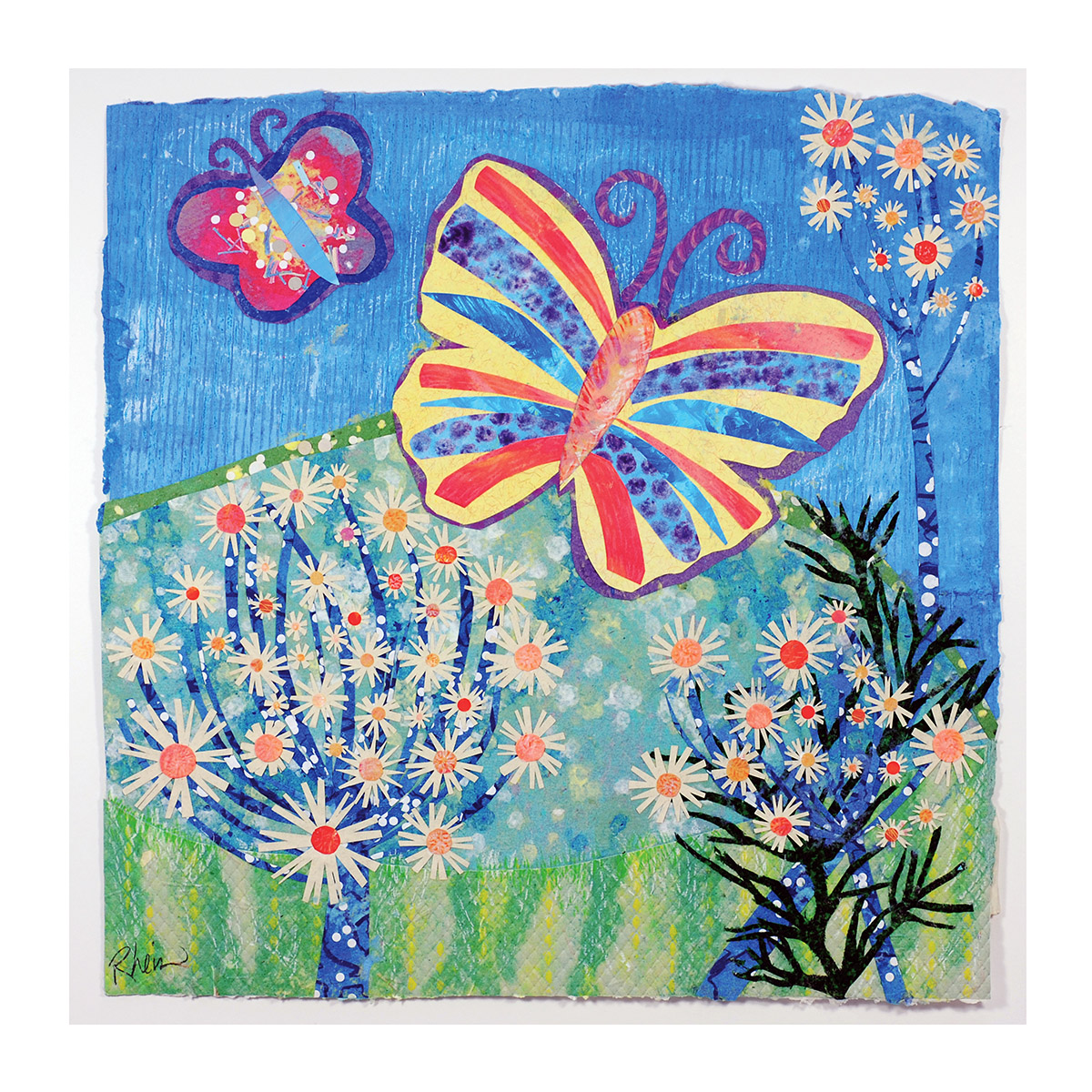 In the spring of 2013, I was selected by the Artworks ArtRX program to create a series of 11 handmade paper & fabric collages depicting flower gardens. Artworks in partnership with Cincinnati Children’s Hospital Medical Center (CCHMC), commissions artists to focus on the healing and life enhancing qualities of art in the hospital environment. The art will hang in the Neonatal Intensive Care Unit (NICU) at the hospital.