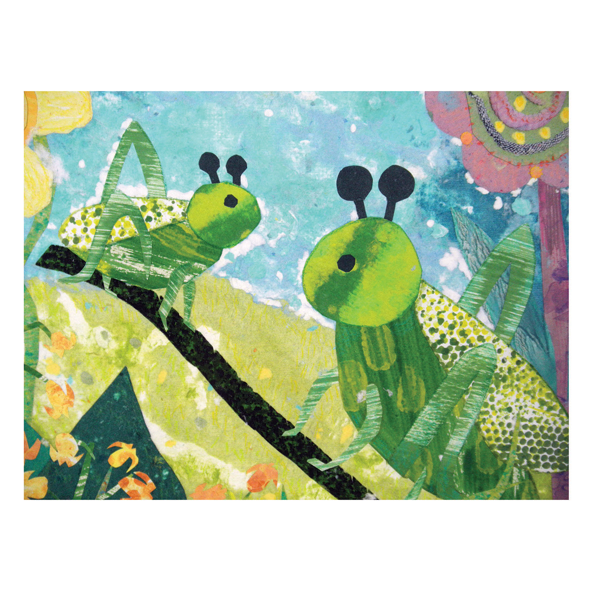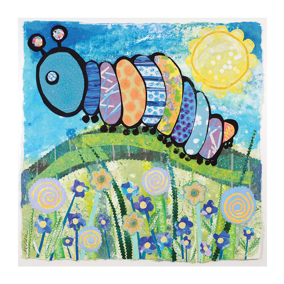 I was honored to be selected by Artworks, Kolar Design and the art selection commmittee to make an additional new body of work in 2014 for Cincinnati Children’s Hospital Medical Center NICU (Neonatal Intensive Care Unit). These 12 pieces were based on thematic insects used throughout the NICU- bees, butterflies, ladybugs, caterpillars, dragonflies, grasshoppers- 2 handmade paper and fabric collages for each insect. They will be hung on the walls in the Neonatal Nursery to create a joyful space and as location finders.